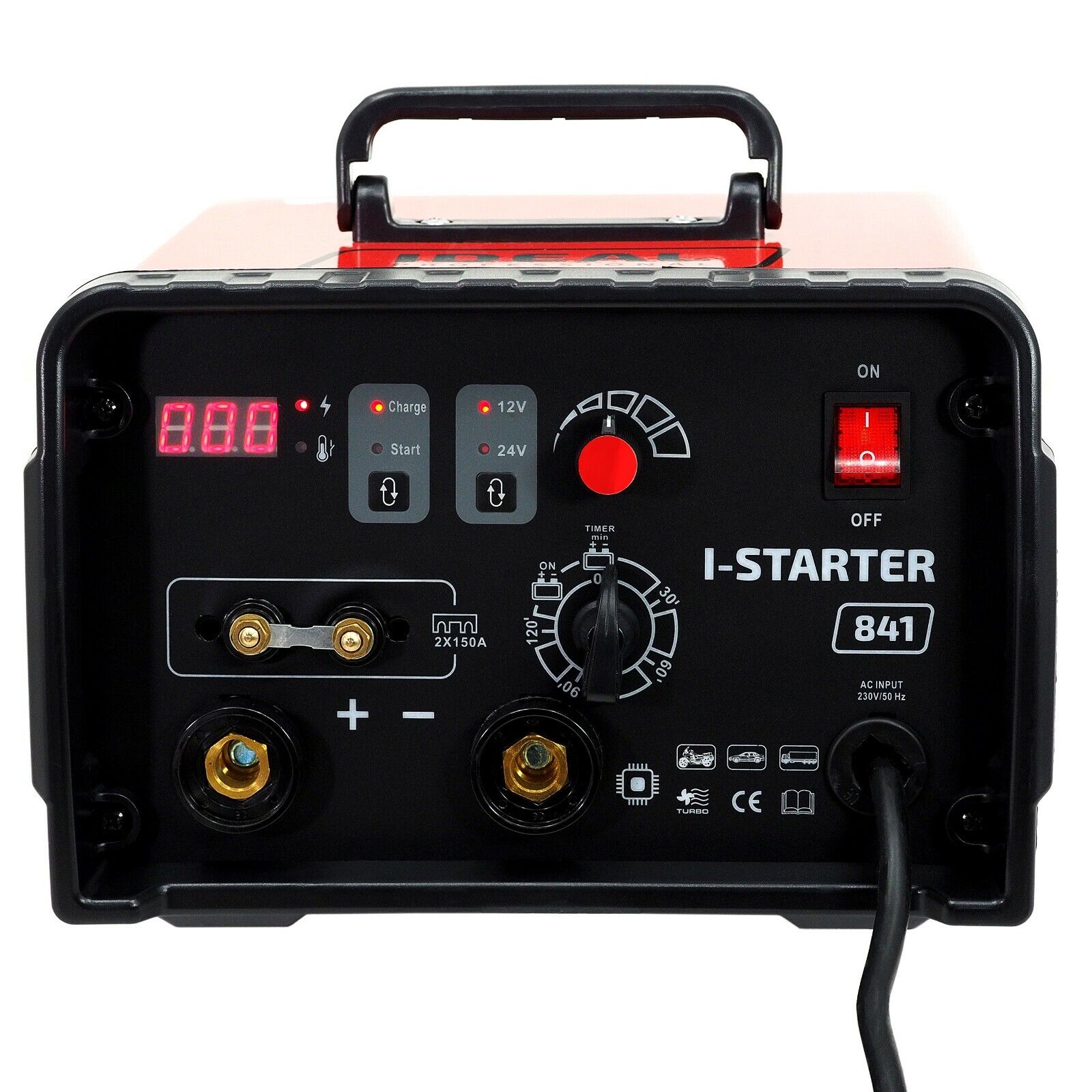 Der I-STARTER 841 ist ein Inverter-Ladegerät zum Laden von 12 und 24 Volt Säurebatterien, mit einer Funktion zum Anlassen von Autos mit Benzin- und Dieselmotoren. Das Ladegerät kann Säure , NASS (elektrolytgeflutet), MF (wartungsfrei), EFB (Enhanced Flooded Battery), GEL, AGM (Absorbierte Glasmatte – Batterien, die für Start-/Stopp-Systeme verwendet werden) Batterien laden.
